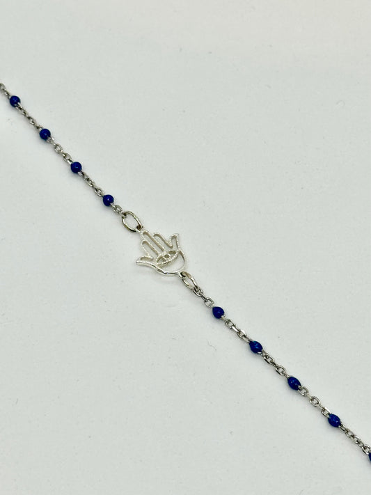 Sterling Silver and Blue Enamel Hamsa Bracelet