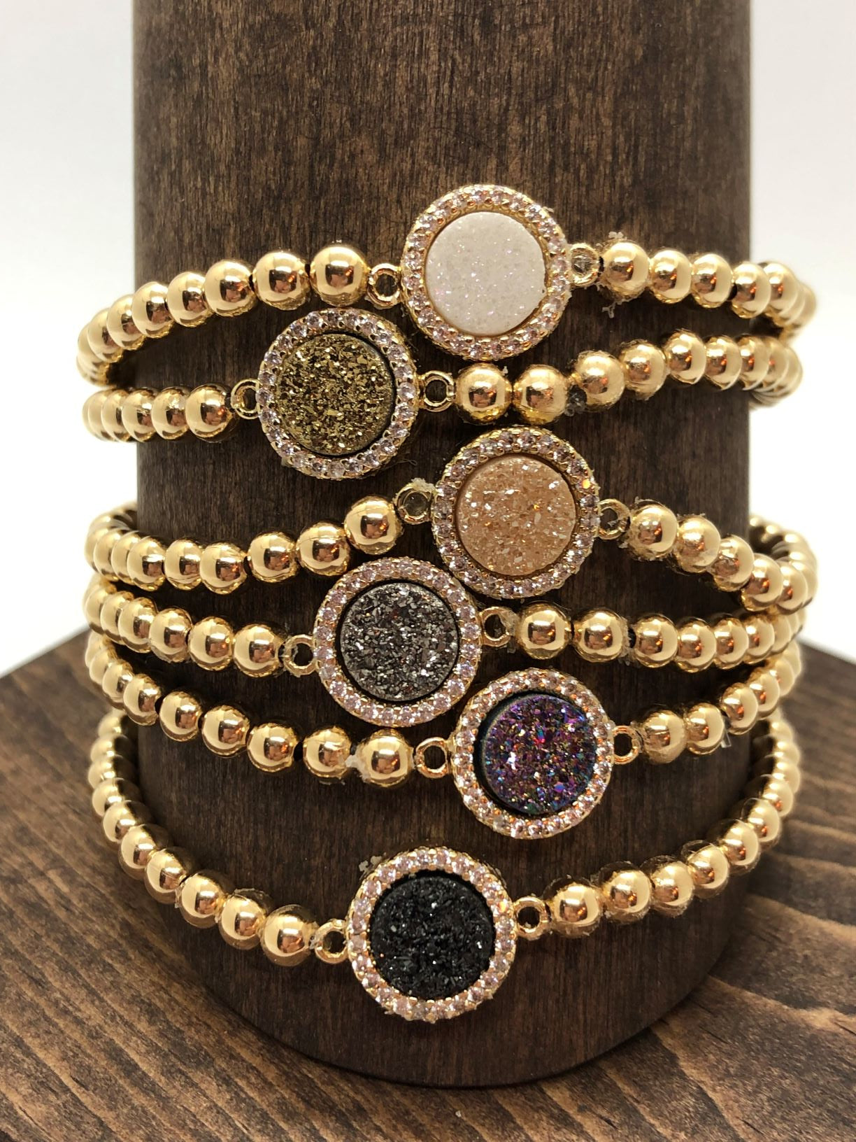 Stretch bracelets made with 4mm Gold or Silver Balls