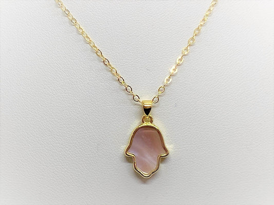 Gold Plated Abalone Hamsa on a Gold Filled Chain