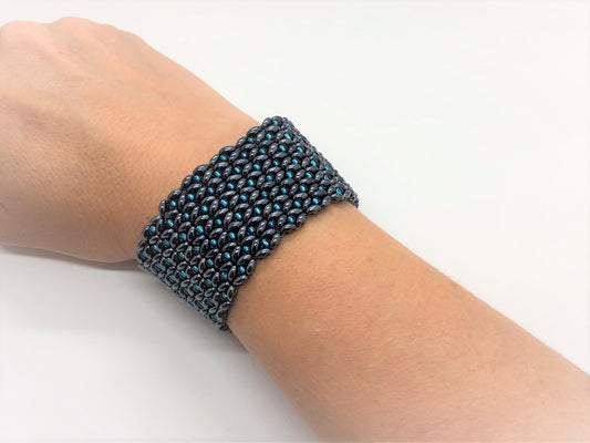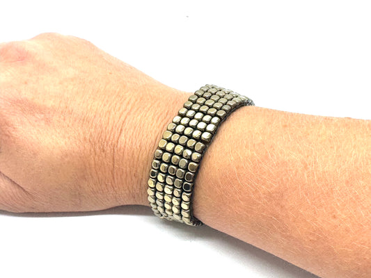 Hematite Cube Handsewn Bracelet
