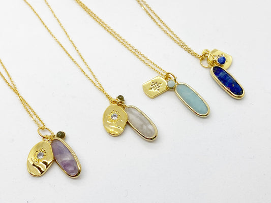 Delicate triple charm gemstone necklace