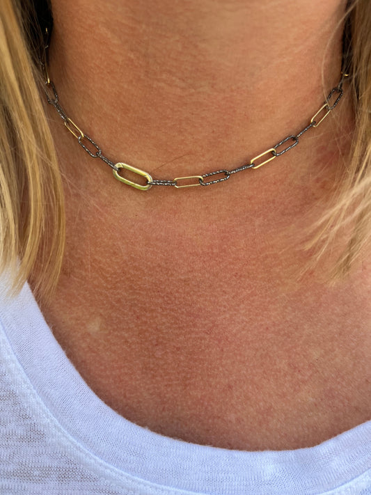 Sparkle Sterling and Gold Vermeil Paperclip Necklace