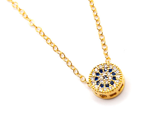 Blue Rhinestone Circle Charm Gold Plated Necklace