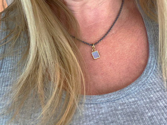 Moonstone is called the visionary's stone. It helps us to see things that are not clear. The moonstone's luster calms the mind and soothes the spirit. Bask in the glow of the universal sound Om! Be calm and clear.