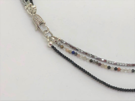 Triple Gemstone Short Necklace with Onyx, Mixed Quartz and Silver Hematite