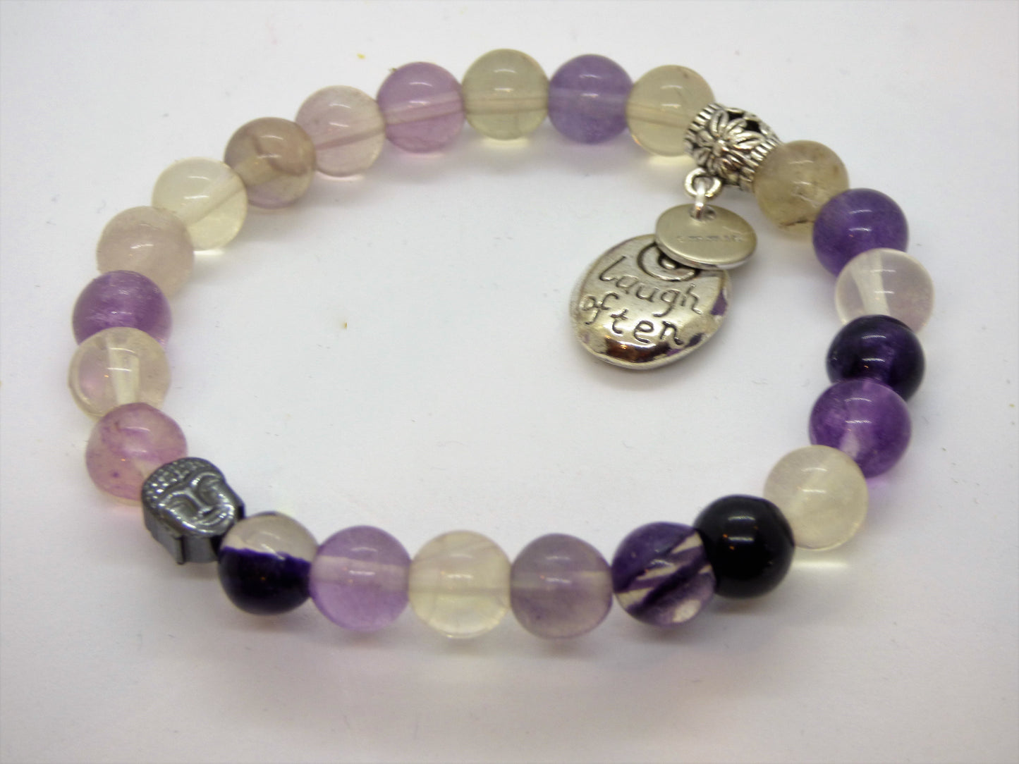 Fluorite and Cloud Quartz Single Bracelet