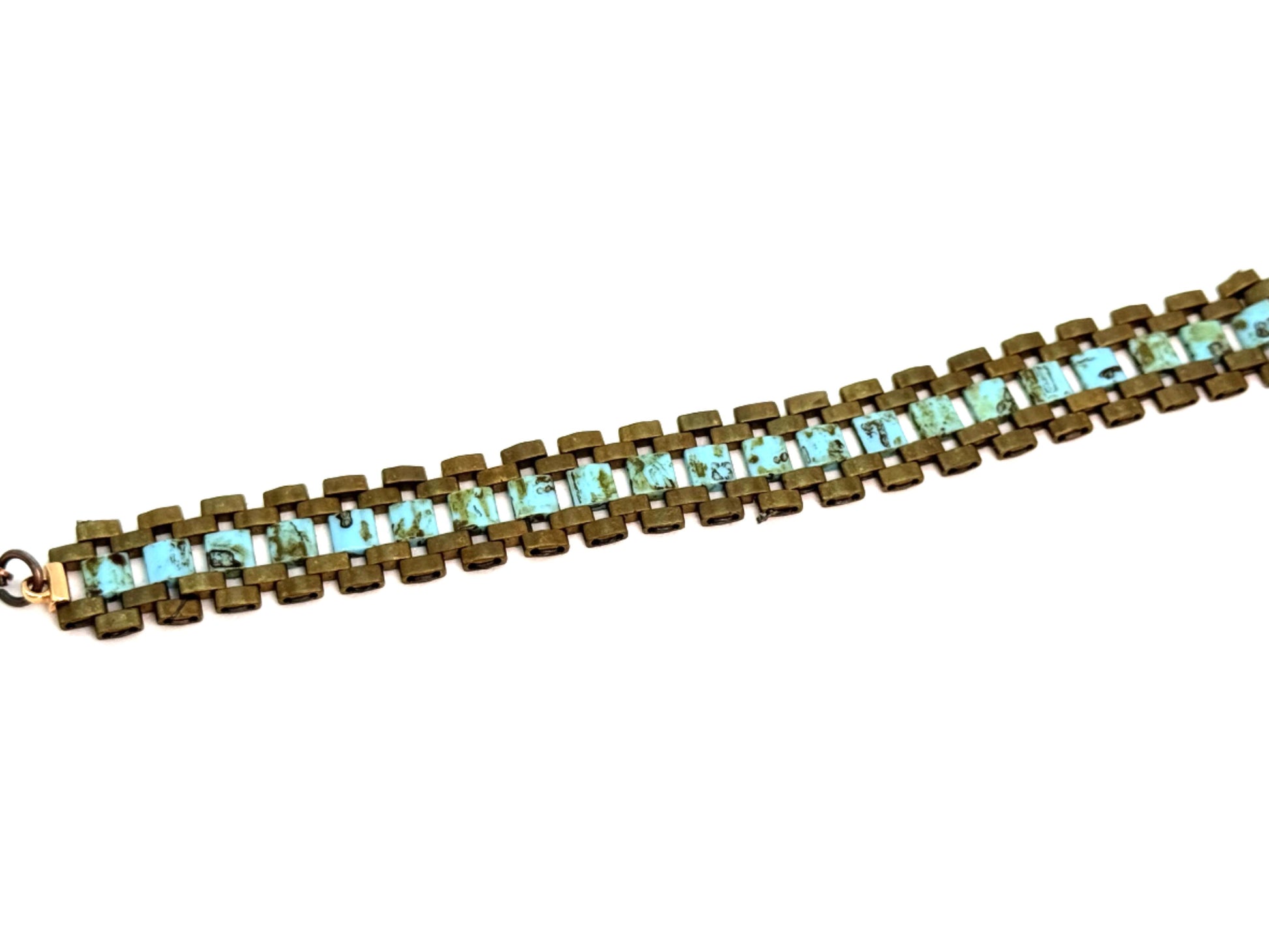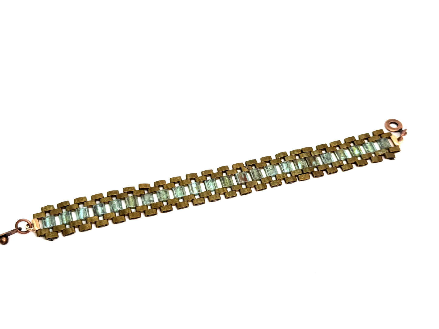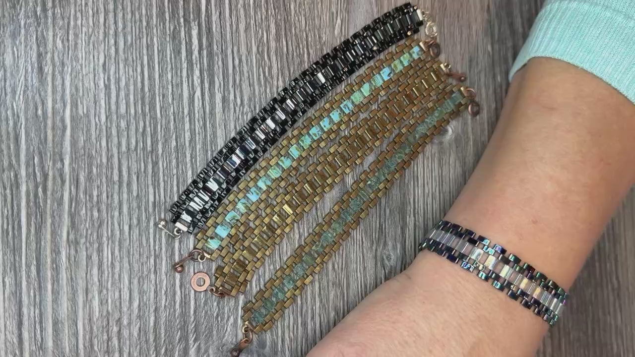 Hop on the trend with our Railroad Handsewn Bracelet! Glass beads in various hues mimic the look of train tracks, making this a must-have accessory for any fashion-forward individual. The convenient snap clasp adds practicality to this stylish piece. Available in 5 colors, with more on the way!