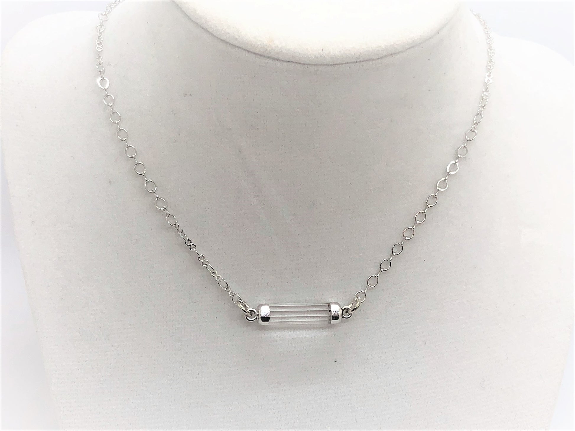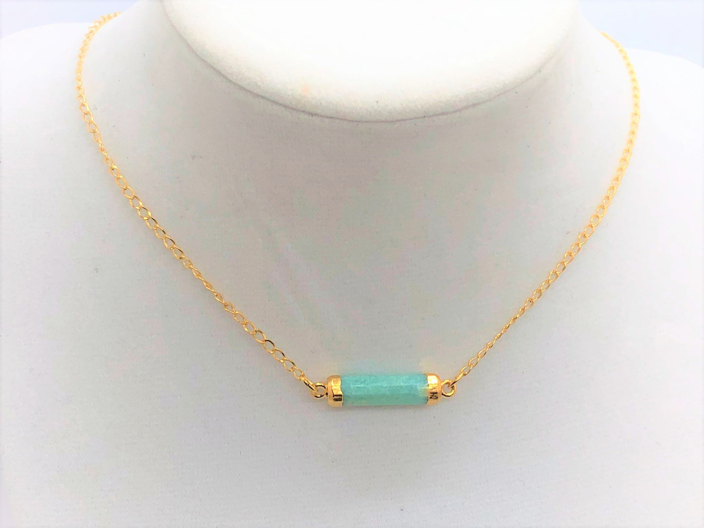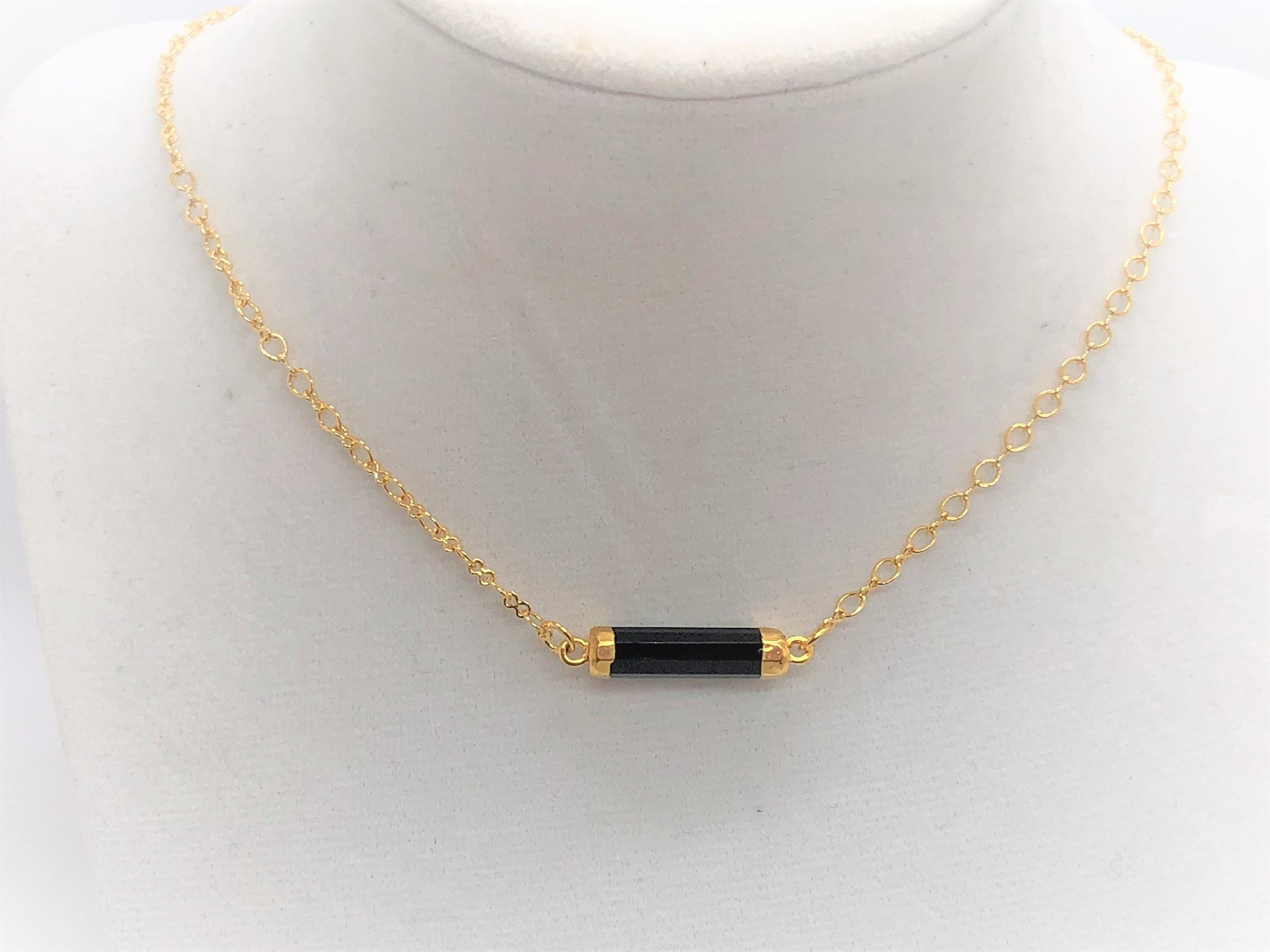 These delicate hand cut gemstone tubes are the perfect layering necklace. They can be clasped anywhere in the chain -- so you can wear them as short as a choker or as long as 18 inches.